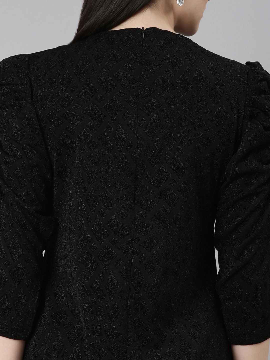Women's Black Round Neck Puff Sleeves Sheath Dress