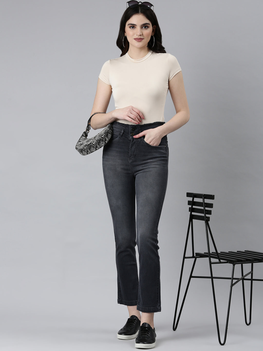 Experience ultimate comfort and style with our Women Black Solid Straight Fit Denim Jeans. Designed for the modern woman. these jeans effortlessly blend sophistication with versatility. making them a must-have in your wardrobe.