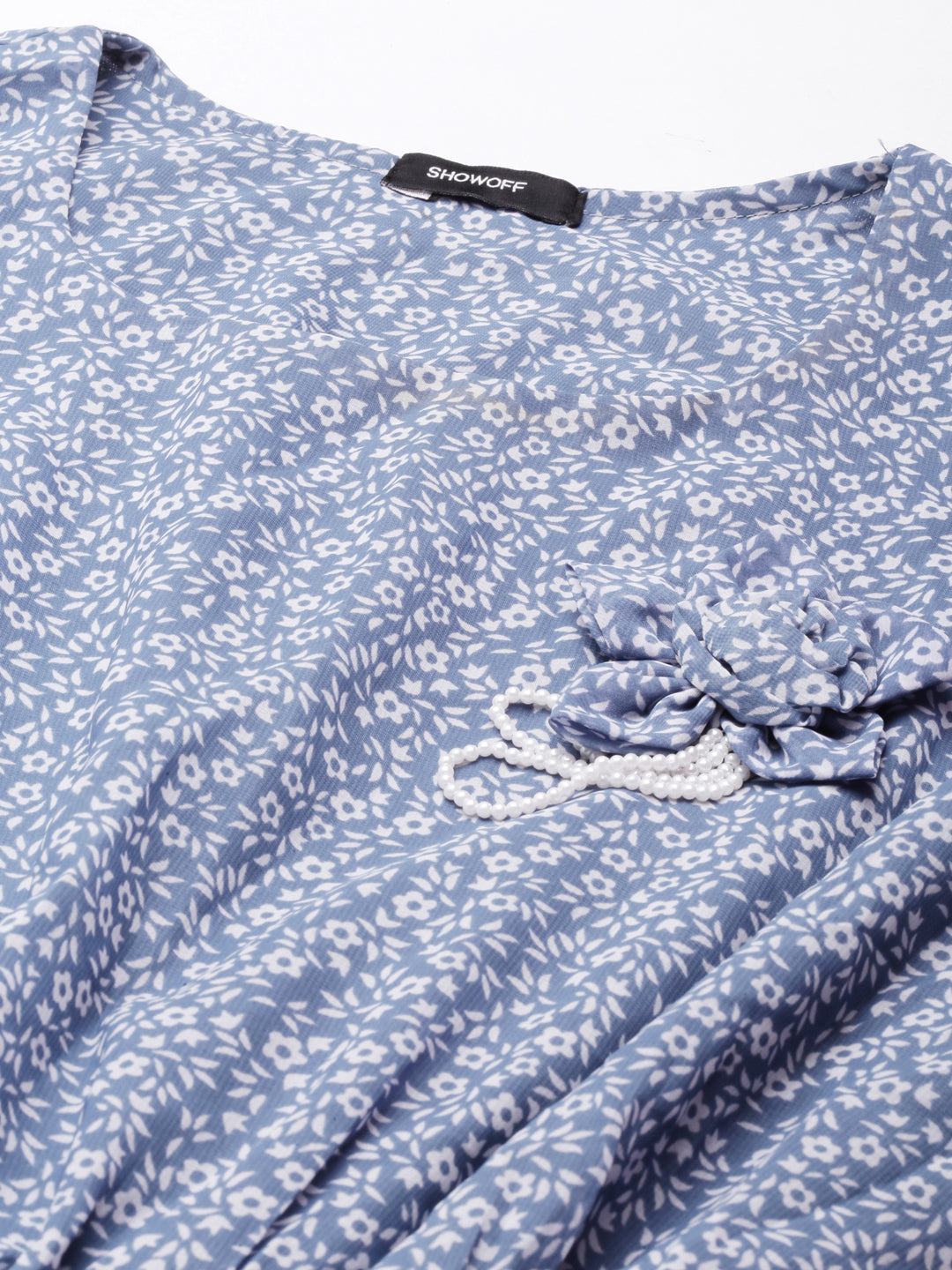 - Beautiful blue floral print adds a touch of femininity