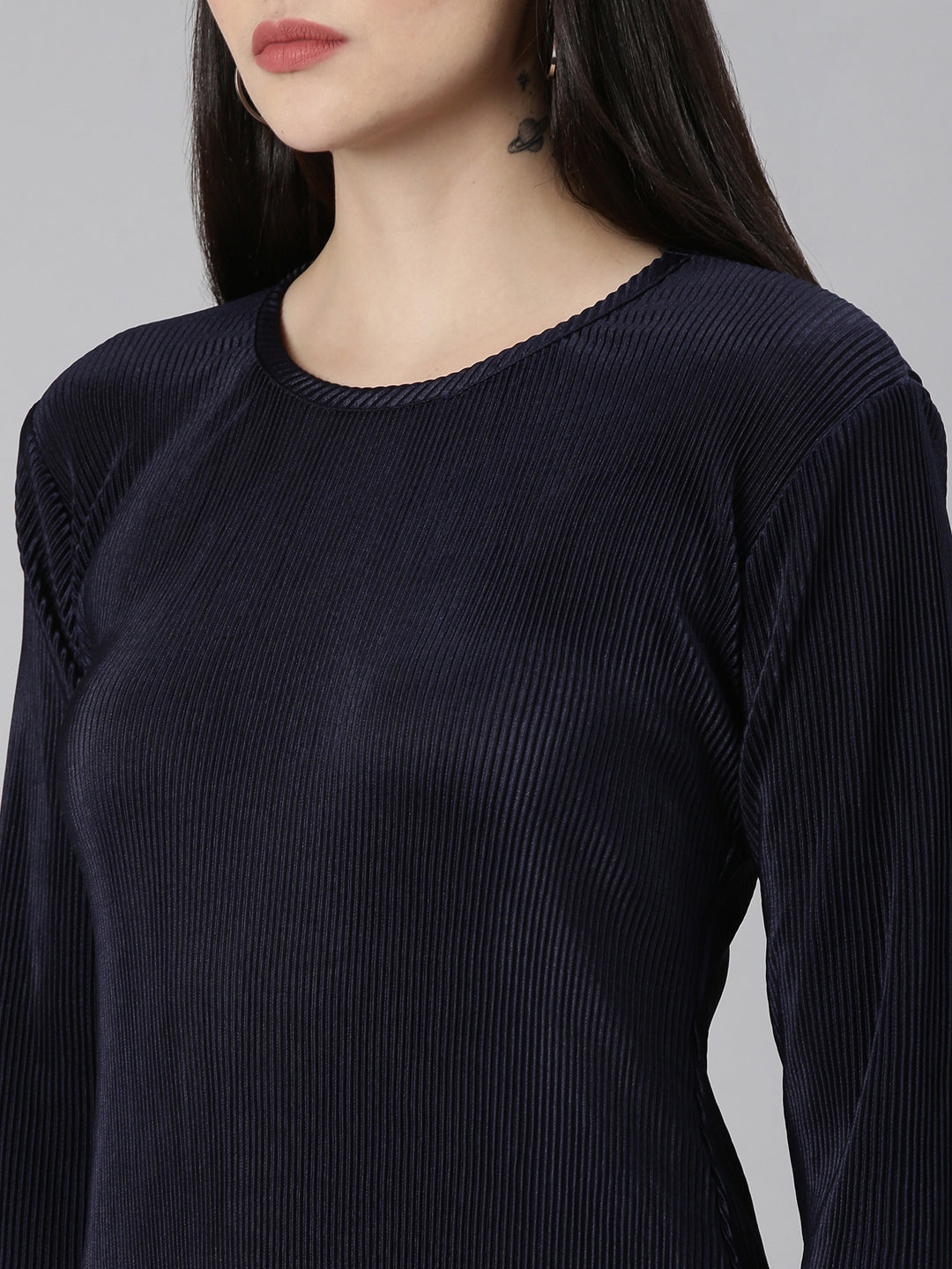 Women's Navy Blue Above Knee Bodycon Satin Dress