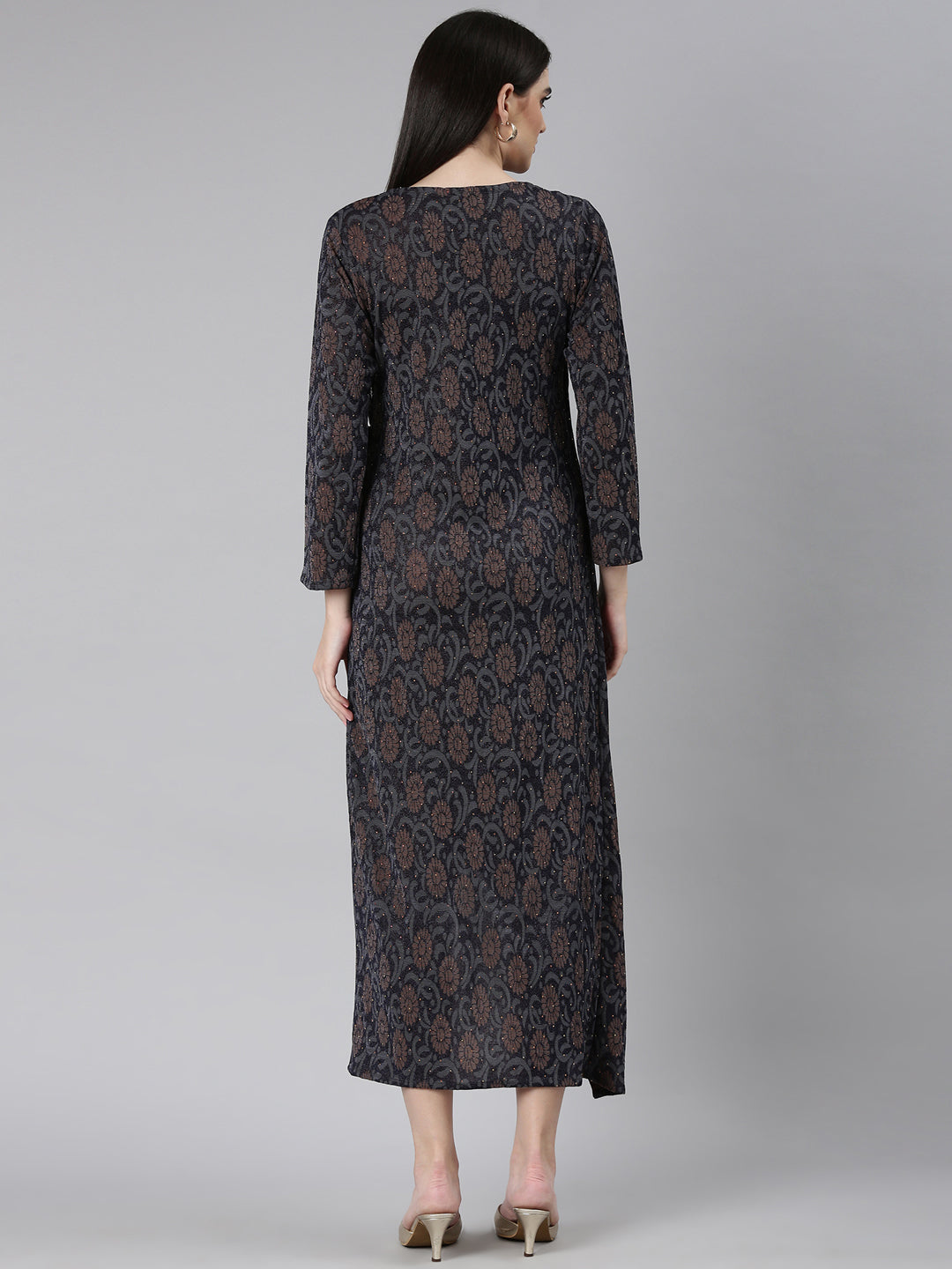Elevate your wardrobe with the Women Navy Blue Solid Gown Dress. a perfect blend of elegance and comfort. This stunning gown is designed to enhance your silhouette while providing a chic and sophisticated look for any occasion.