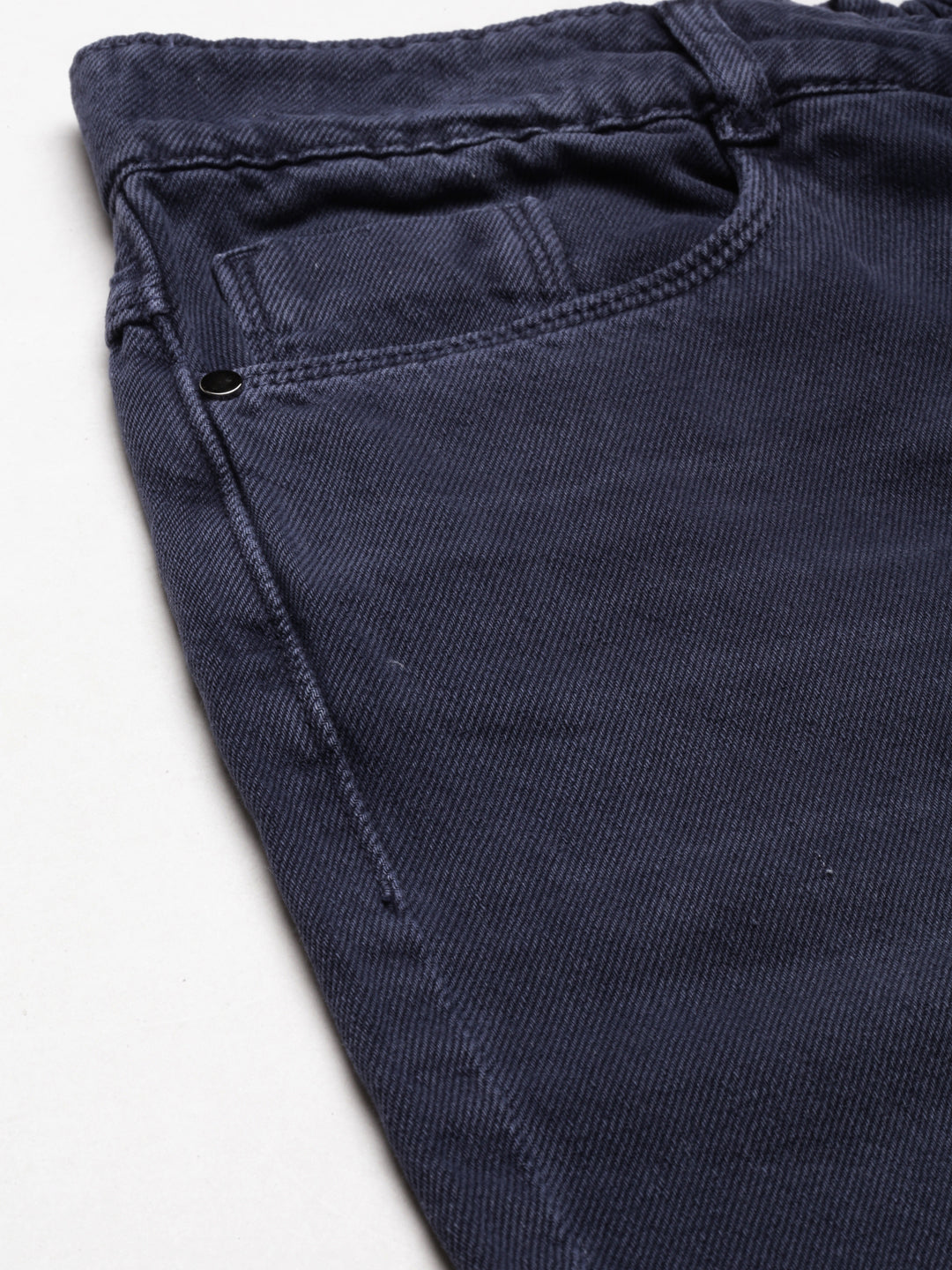 Women's Navy Blue Mid-Rise Light Fade Whiskers & Chevrons Denim Jeans