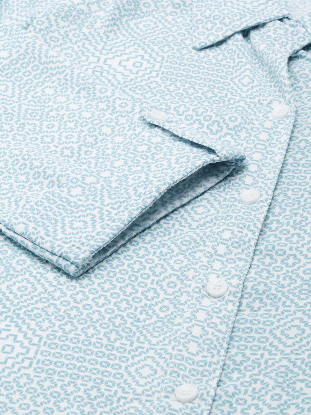 Elevate your wardrobe with our Women White Geometrical Shirt Dress. a perfect blend of style and comfort. This dress features a modern geometric design that adds a chic touch to your look. making it ideal for various occasions.